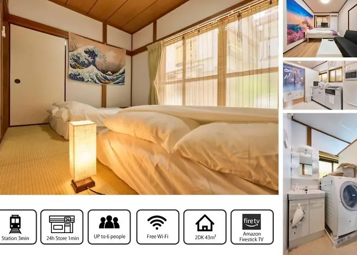 The apartment is nestled in the Meguro Ward district, not far from the Rinshinomori Park. This 1-bedroom apartment is just 1.5 km from the Gohyaku Rakanji Temple, and also just 450 metres from the Musashi Koyama Shopping Street Palm. New!貸切アパート2dk44㎡ 駅2分渋谷駅電車15分 コンビニ公園5秒dベッド3台高速wifi is 10 minutes' drive from the Hachiko Memorial Statue.